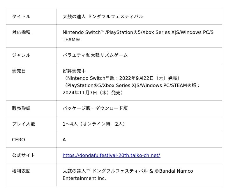 ・家庭用(太鼓の達人 ドンダフルフェスティバル):2026年2月21日(土)10:00よりプレイ可能