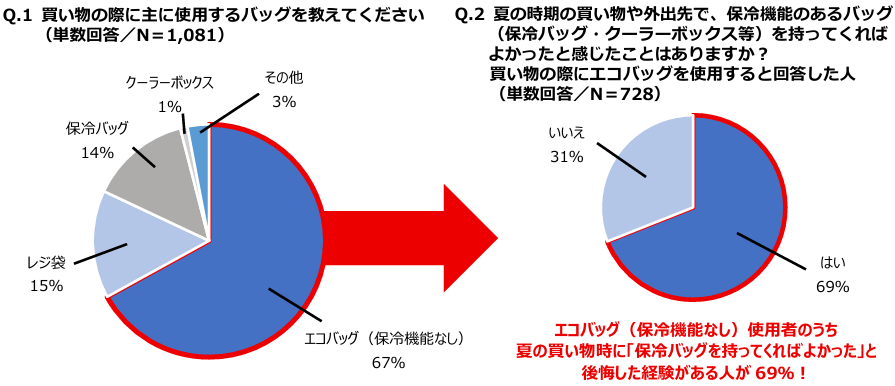 ■エコバッグ普及の一方で、夏の買い物時に「保冷バッグを持ってくればよかった」と 後悔する人が多数