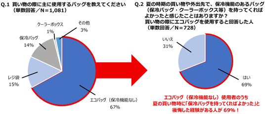 当社が実施した『保冷バッグに関する調査』によると、普段の買い物でエコバッグを使用している人は67%と多数派であることが分かりました。一方で、そのエコバッグ使用者のうち69%が、夏の買い物時に「保冷機能のあるバッグを持ってくればよかった」と後悔した経験があると回答しています。