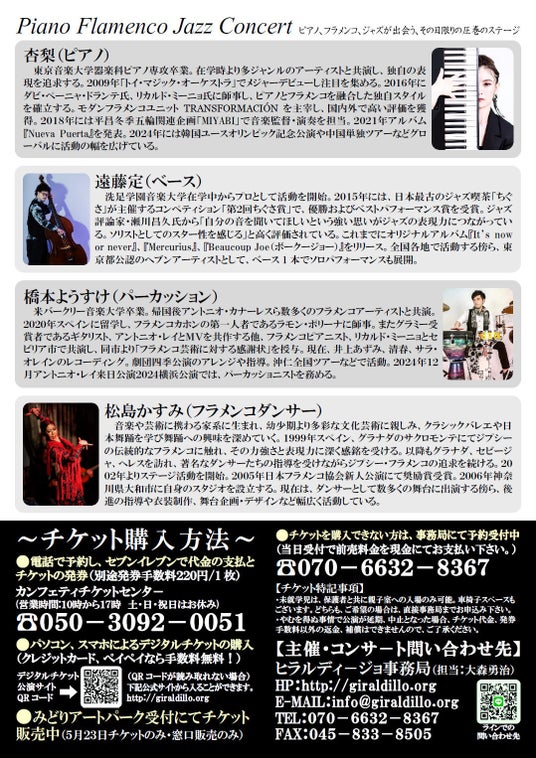 ヒラルディージョ事務局主催、『Piano Flamenco Jazz Concert』が2026年5月23日 (土)に横浜市緑区民文化センター みどりアートパークホール(神奈川県 横浜市緑区 長津田 二丁目1番3号)にて開催されます。