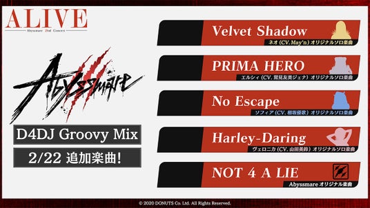 株式会社DONUTS(東京都渋谷区、代表取締役:西村啓成)は、DJをテーマとしたメディアミックスプロジェクト『D4DJ』のDJユニット、Abyssmare(アビスメア)の単独コンサート