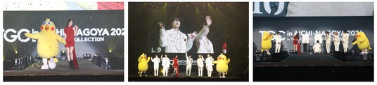 NTTグループが提唱する次世代情報通信基盤構想「IOWN(アイオン)(※)」を活用したスペシャルステージを展開。『TGC in あいち・なごや 2026』には、原宿から“NEW KAWAII”を発信する国民的アイドルグループFRUITS ZIPPERが登場し、同日、横浜BUNTAIで開催されていた『TOKYO GIRLS MUSIC FES. 2026』には、2025年に大ブレイクを果たしたCANDY TUNEが出演。2つの会場をリアルタイムで接続し、CANDY TUNEの大人気曲『倍倍FIGHT!』と、KAWAII LAB.初の合同楽曲『CHU CHU CHU研究中!』の豪華2曲を披露。離れた場所にいながら、まるで同じ空間にいるかのように、名古屋と横浜が“ひとつのステージ”としてシンクロする、IOWNならではの最先端演出に注目が集まるなか、お互いの会場の観客へとコール&レスポンス。息ぴったりのにぎやかなパフォーマンスで、場内に一体感を生み出しました。
