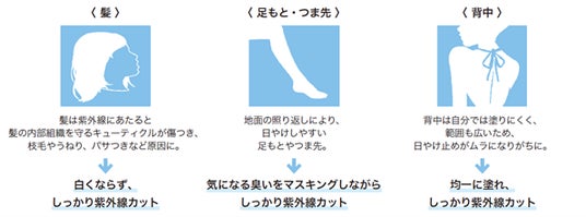 ■シュッと手軽に、いつでもどこでも紫外線をブロック!肌や髪に使用できるスプレータイプの日やけ止めがパウダリーシャボンの香りで登場!