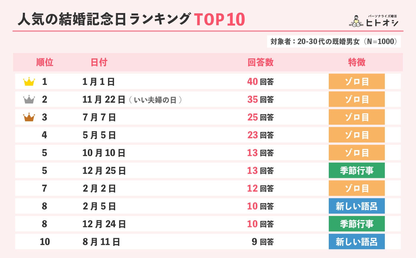 1.人気の結婚記念日は?(N=1000)