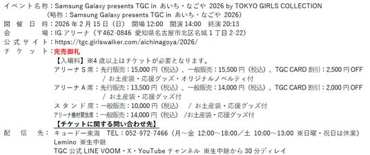 東京ガールズコレクション実行委員会(企画/制作:株式会社W TOKYO)は、2026年2月15日(日)にIGアリーナにて、『Samsung Galaxy presents TGC inあいち・なごや 2026 by TOKYO GIRLS COLLECTION』(TGC in あいち・なごや)を開催しました。