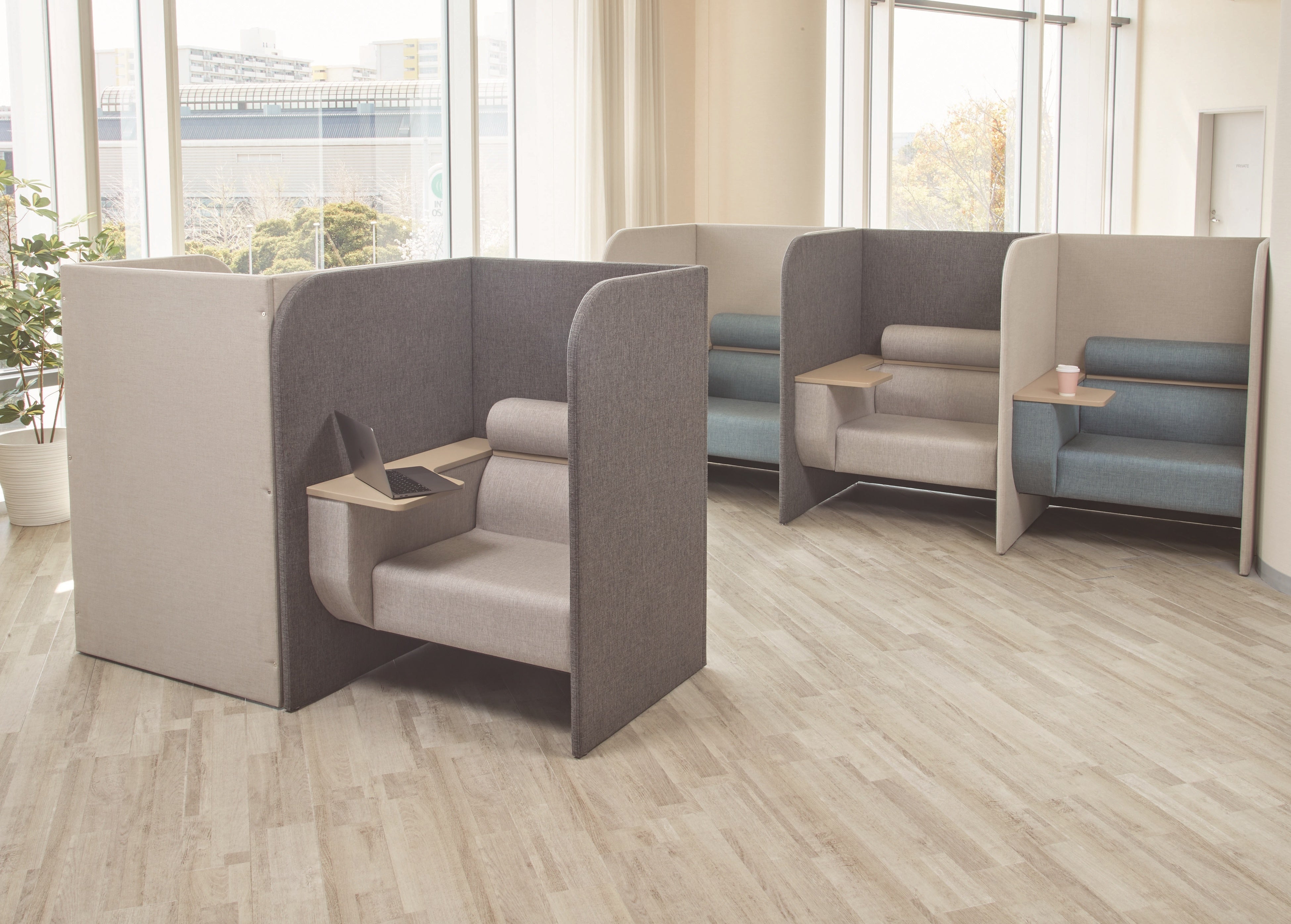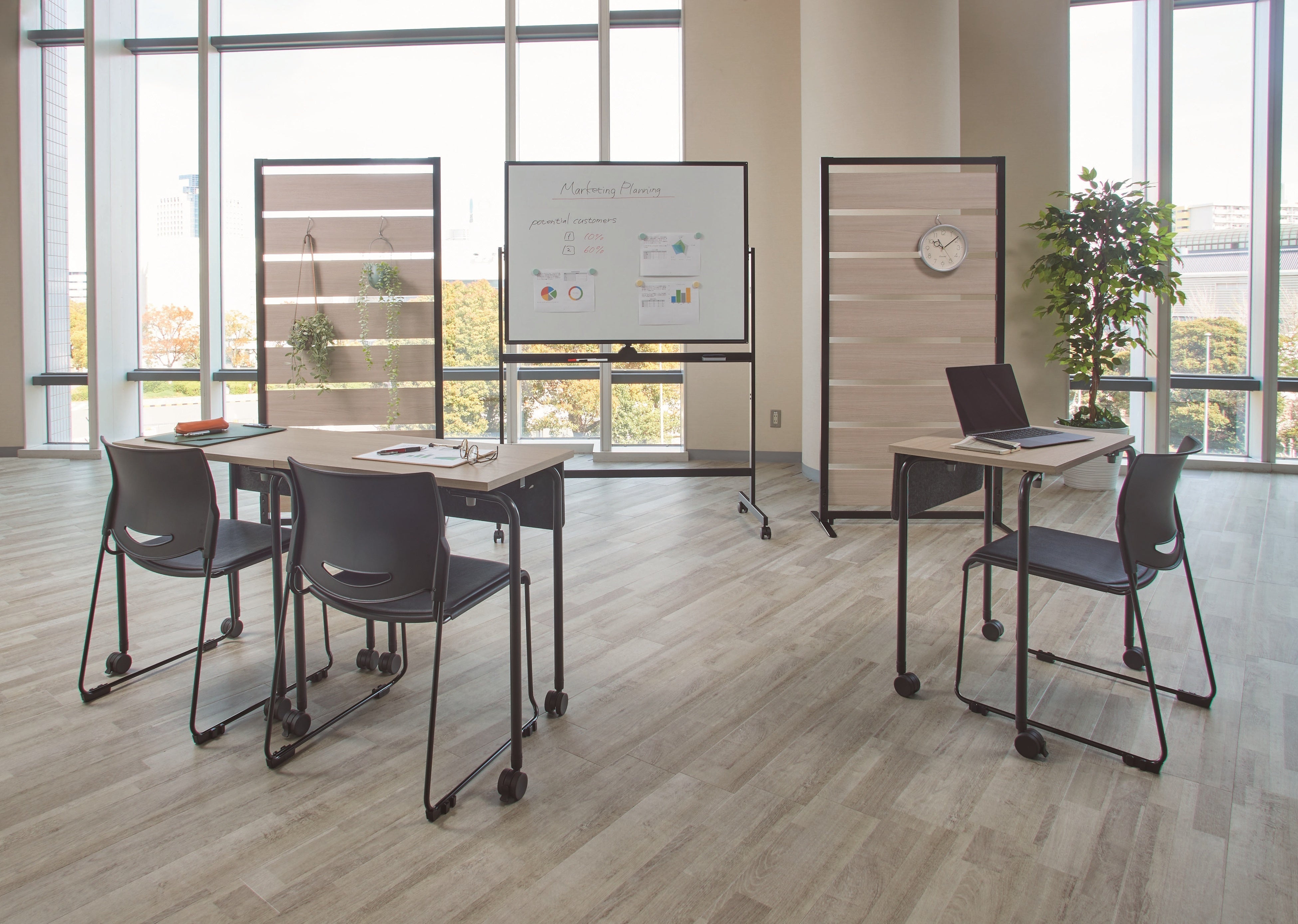 - オフィス・店舗向けを中心とした、コストパフォーマンスと機能性を併せ持つオリジナル家具を展示