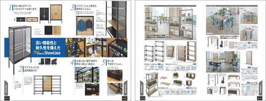 当社は、アパレル・雑貨店・量販店など小売店に加え、近年ではオフィスや事務所、飲食業、サービス業など多様な業種からの引き合いが増加しています。店舗はもちろんのこと、人が集まる空間づくりに携わる中で、お客様のニーズはより多様化しています。あらゆる空間で独自性が求められる一方で、人材不足や物価高騰など経済合理性も求められています。それらの異なるニーズや課題に応えるため、当社は、モジュール化した店舗什器に多様なオプションを展開することで、カスタマイズを可能にした什器シリーズを製造販売しています。