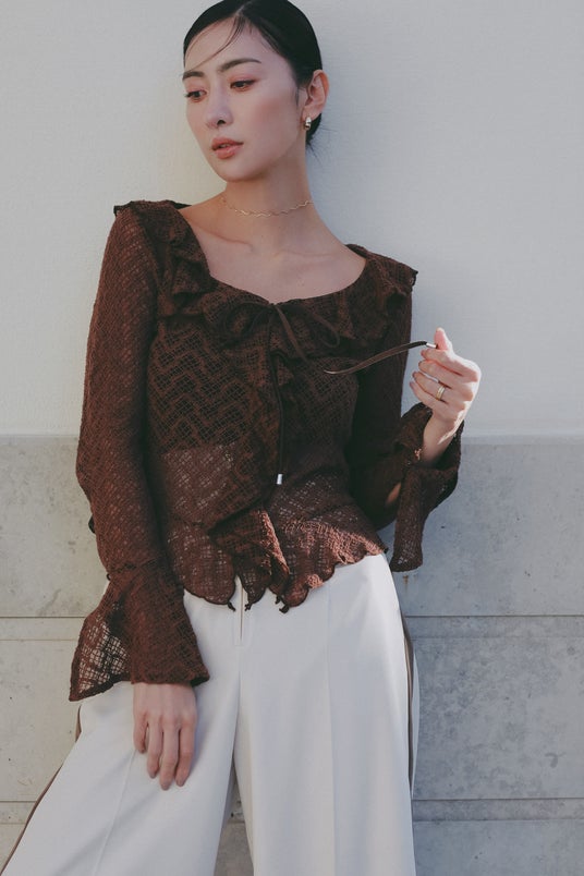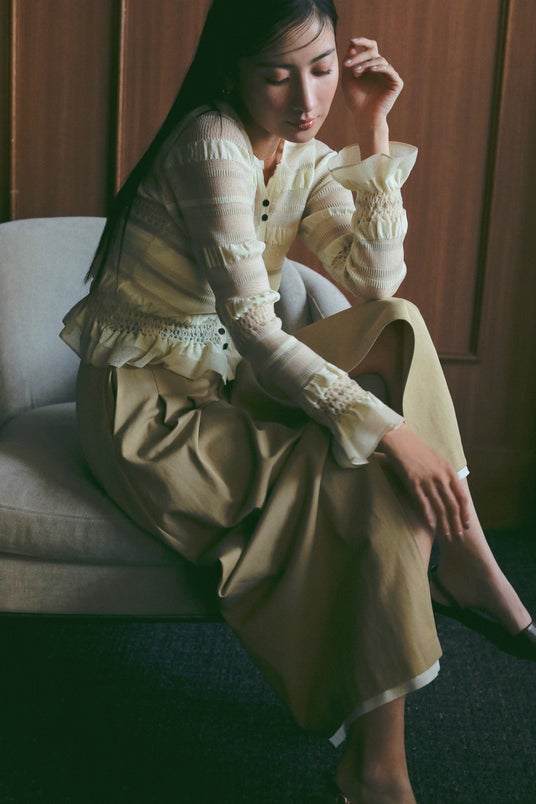 レースやシアー素材が描く繊細な透け感は 女性らしい気配をさりげなく漂わせる