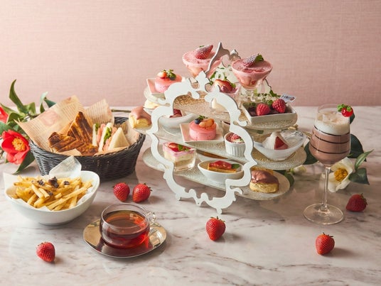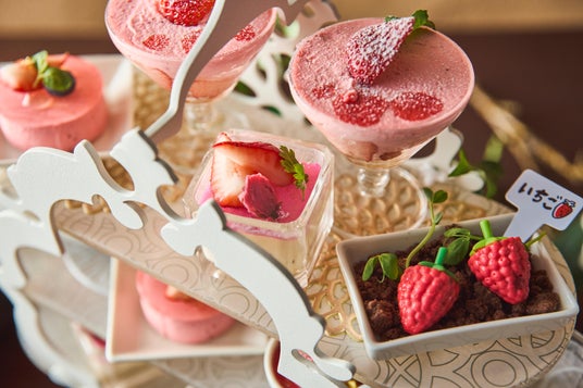 旬の苺を贅沢に使用し、洋と和の要素を織り交ぜた「苺づくしの贅沢アフタヌーンティー」。