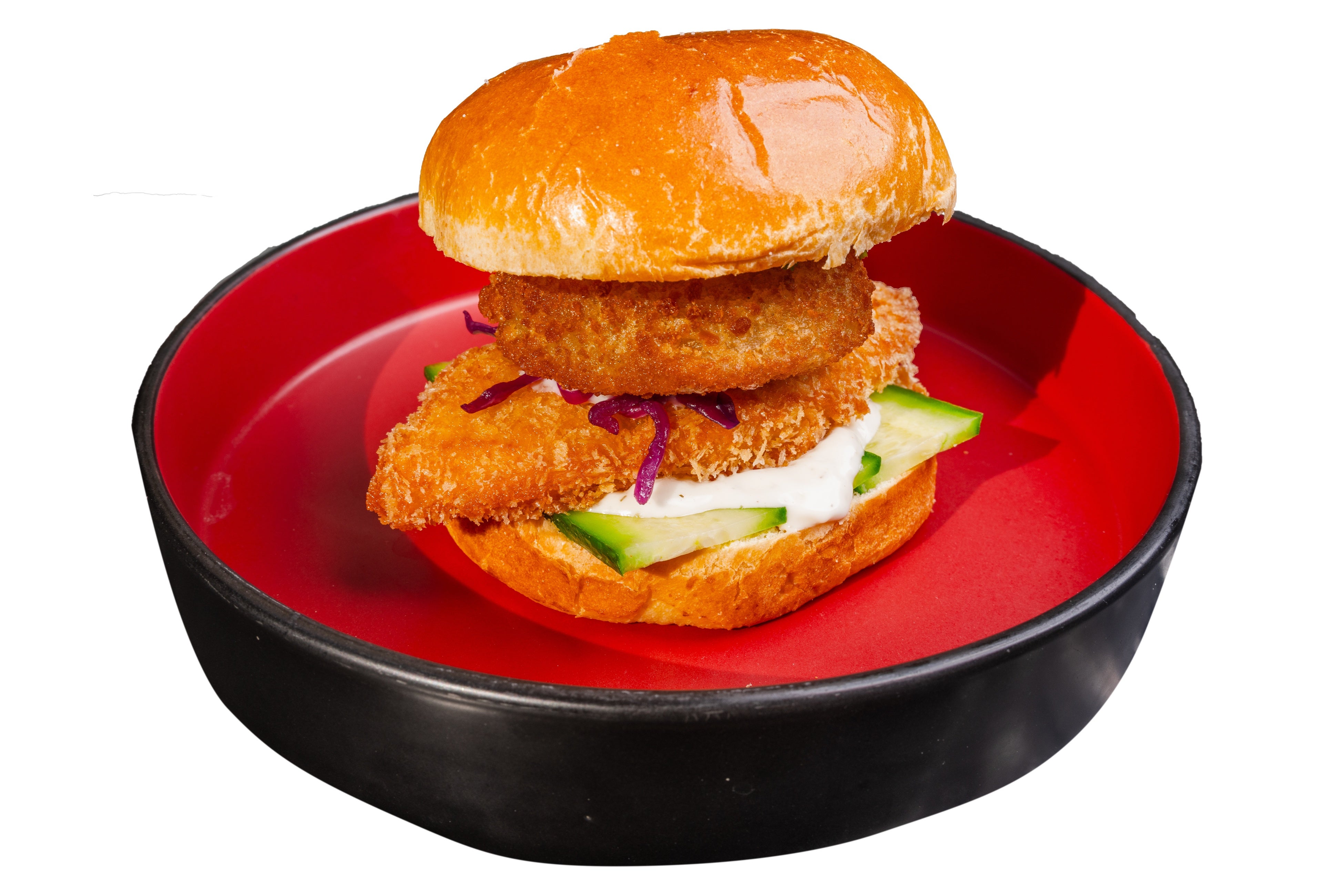 新鮮な真鯛をフライにし、フライドオニオンと新鮮な野菜と共にバーガーバンズに挟んだ、サクサクとした衣の食感が軽やかで満足感のある一品。