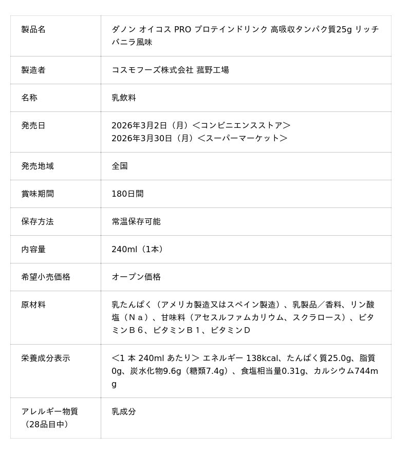 ダノンジャパン株式会社(本社:東京都目黒区、代表取締役社長:ロドリゴ・リマ、以下ダノンジャパン)は、カラダを動かすすべての人の良質なタンパク質補給を応援する「オイコス」ブランドから、新たに「オイコス PROプロテインドリンク 高吸収タンパク質25g」シリーズを立ち上げました。第1弾として「リッチバニラ風味」を、2026年3月2日(月)より全国のコンビニエンスストアで、3月30日(月)より全国のスーパーマーケットで新発売します。