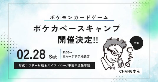 アクセルマーク株式会社(本社:東京都中野区、代表取締役社長:松川裕史、証券コード:3624)が運営するcarderia(TM)池袋店(東京都豊島区)にて、2026年2月28日(土)、ポケモンカードゲームの自主イベント「ポケカベースキャンプ ~みんなで強くなる道場~」が開催されます。本イベントは、ポケカプレイヤーとして活動するCHANG氏が、お子様とともに企画した親子主催イベントであり、carderia(TM)池袋店を会場に実施されます。