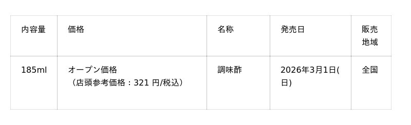 1590年頃、豊臣時代から伝統と革新を紡ぐ醸造酢メーカー、タマノイ酢(株)(本社:大阪府堺市 代表取締役社長:播野貴也、以下当社)は、新ブランド「 熟まろ 」より、「 熟まろ 逸品酢 燻製 185ml 瓶 」を2026年3月1日(日)より全国にて発売いたします。本品は、185mlの卓上サイズで、かけても・つけても美味しく簡単に、燻製薫るワンランク上の逸品をお楽しみいただける万能味つけ酢です。原料には、特許取得「熟成まろやか製法」で作り上げたまろやかな酸味のお酢と、旨み豊かな昆布だしを使用。ご家庭の食卓にこれ一本で、手間ひまかかる燻製のコク深くスモーキーな味わいをお楽しみいただけます。