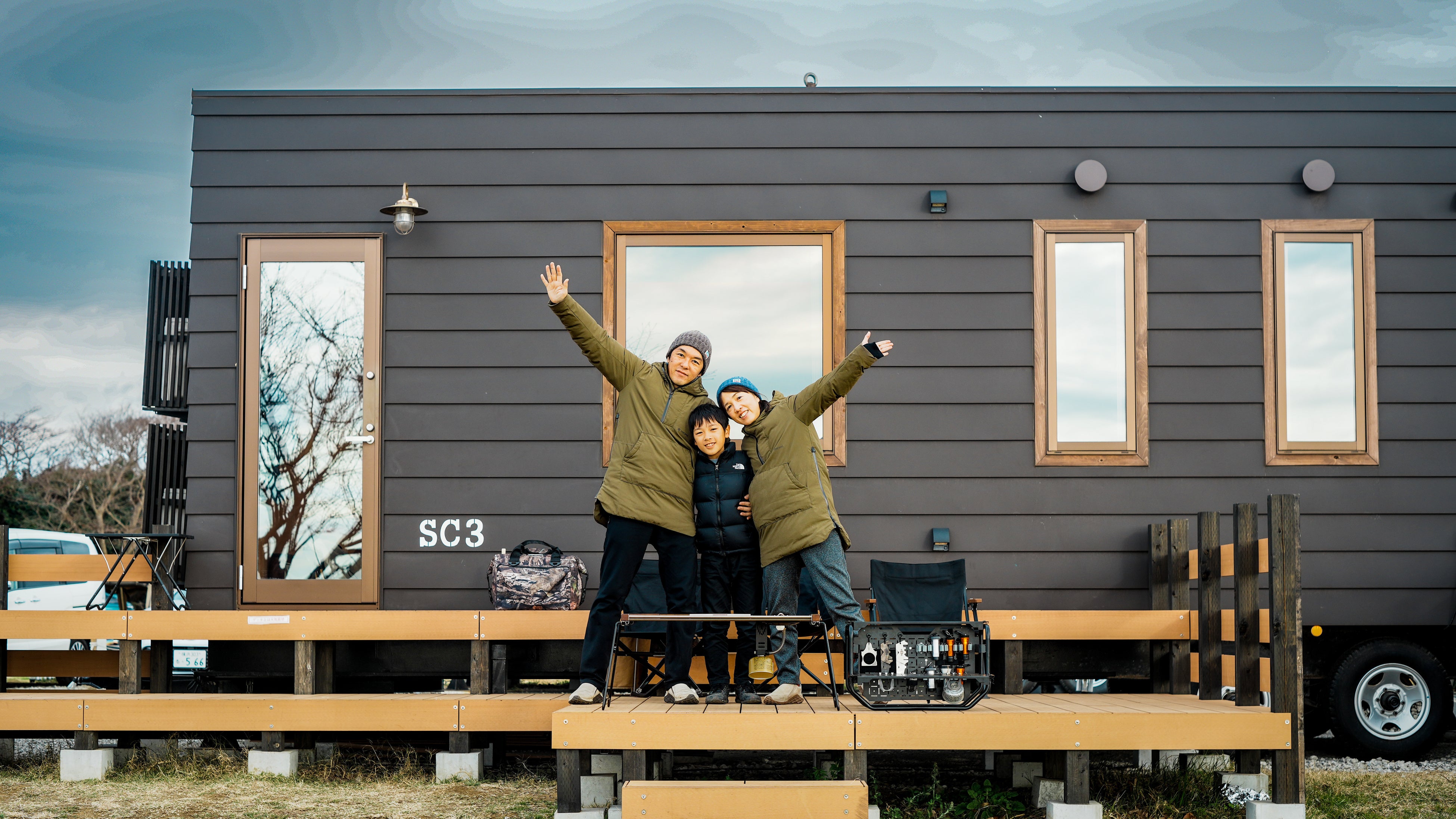 本コンテンツの舞台となるのは、長井海の手公園 ソレイユの丘内に設置されたスタイリッシュなトレーラーハウスです。