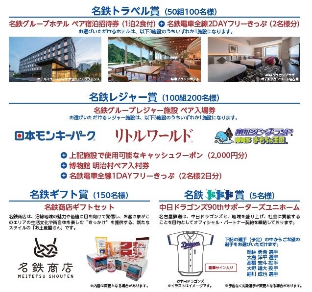 本社債は、幅広い個人投資家の皆さまに当社グループのサービスや沿線地域の魅力を体感していただきたいとの想いから、愛称を「名鉄沿線おいでな債」とし、名鉄電車のフリーきっぷや当社グループ施設の利用券等が当たる懸賞を用意します。本社債のご購入や懸賞を通して、当社グループの事業についての理解を深めていただけることを目指します。