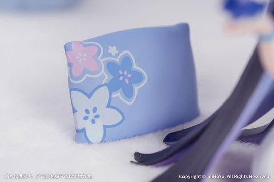 甘い印象のノースリーブワンピースをまとったゼーレが、ちょこんと横座りする姿で立体化。深みのあるロングヘアは自然に垂れ、半透明の花の髪飾りと胸元のリボンはパール塗装で、細部まで丁寧に表現しました。