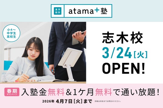 マルイファミリー志木(株式会社丸井、本社:東京都中野区、取締役社長:青野 真博)8Fに、「進学個別 atama+塾」が開校いたします。これによりイーオンホールディングスが展開する「atama+塾」は合計36校舎となります。