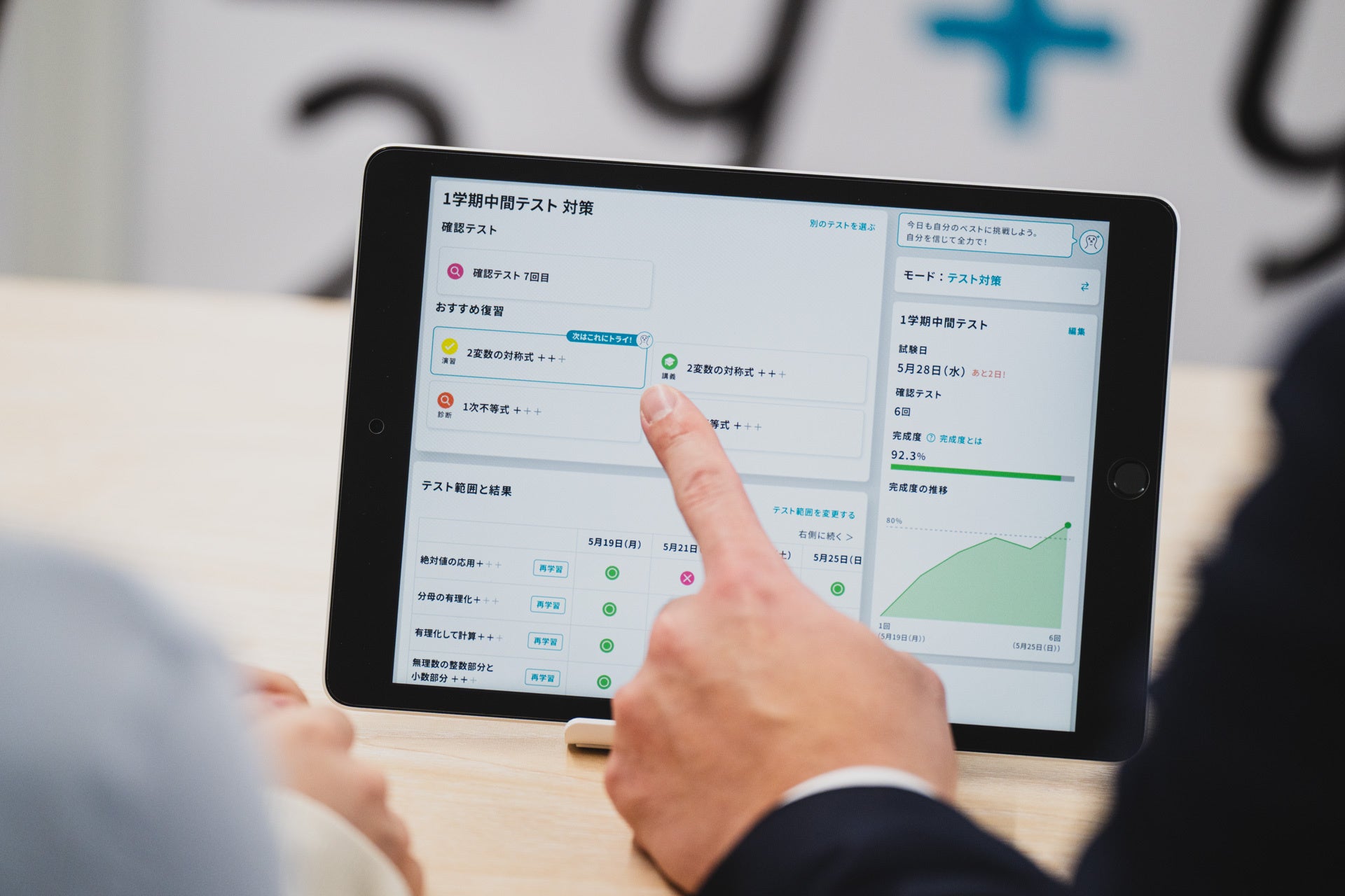 多くの塾が学期や月に1回の面談で計画を修正するのに対して、「atama+塾」の校舎長は「その日」「その瞬間」の学習状況を把握できます。学習分析AIのデータから、校舎長が進捗の遅れや理解不足をリアルタイムに検知し、学習時間の追加など学習計画を即座に修正・最適化し更新します。逆算カリキュラムとのズレを放置しないので、「気づいたらカリキュラムから大きく遅れていた」「定期テストや模試の直前に遅れていることが判明した」ということなく安心して通い続けることができます。