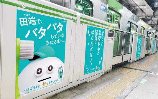 「田端でバタバタしているみなさまへ。」をテーマに、ホームドアや階段のシートラッピングで駅全体を「バタバタ駅」として演出します。ホームドアには「ハミガキ粉が口についたまま気づかず出社」「ハミガキ中の記憶はほとんどない」など、バタバタ世代が共感する"あるある"コピーも掲出。バタバタな日常を送る方々への共感メッセージとともに、クリアクリーンNEXDENTの魅力を伝えます。