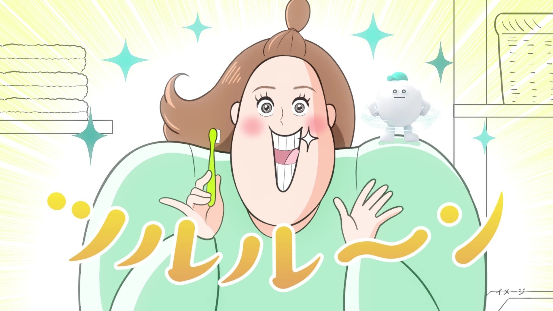本TVCMはモーニング娘。の名曲「ハッピーサマーウェディング」をアレンジした楽曲を使用し、人気漫画家ブブさんの描き下ろしイラストによるアニメーションで制作されています。さらに、今回のリニューアルの鍵となる「粒*」を象徴する愛らしいキャラクター「粒くん」が登場し、バタバタな家族の歯磨きシーンの中で、忙しい毎日を送る現代人に「ハミガキくらい粒*でラクしてね!」とメッセージを送る内容となっています。