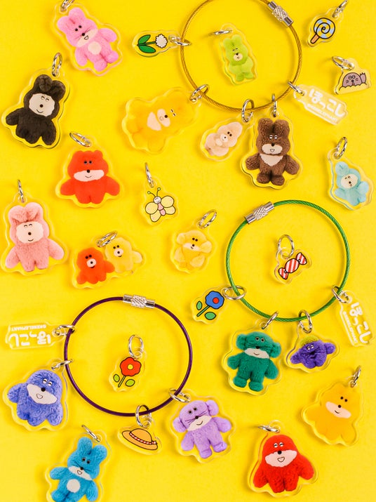 選べるアクキーは、18にんのぽっこしたちとモチーフパーツが可愛い小さなアクキーに。自分で選んで、好きなチャームを作ることができます。