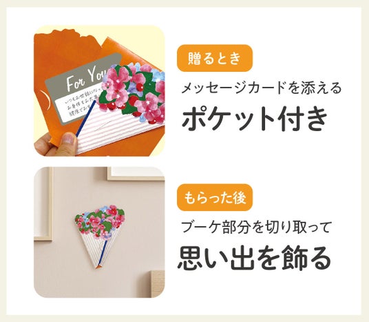 パッケージの花束を切り取って壁などに飾ることもできます。