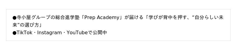 総合教育サービス企業の株式会社やる気スイッチグループ(東京・中央区、代表取締役社長:高橋 直司、以下 やる気スイッチグループ)は愛媛県を中心に集団学習塾などを展開する寺小屋グループ(愛媛・松山市、代表取締役社長:吉見 達治)の総合進学塾Prep Academy(プレップ・アカデミー)が制作したショートドラマ『トライアングル』を公開したことをお知らせします。