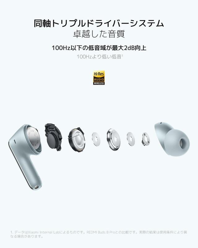 アクティブノイズキャンセリングやハイレゾ音源といった機能が充実しながら、コスパに優れたXiaomi(シャオミ)の「REDMI Buds 8 Pro」がお買い得です。