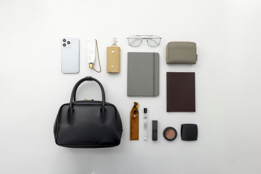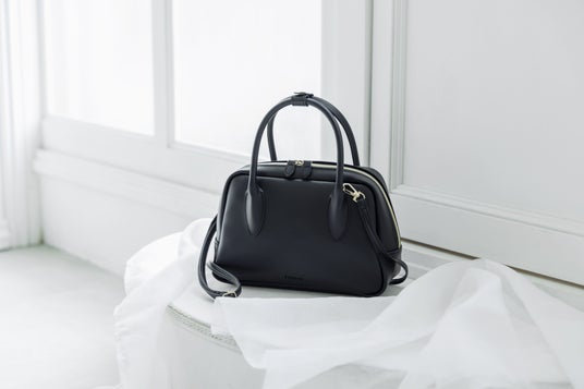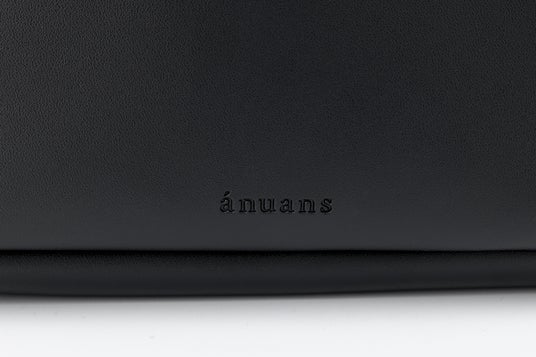anuansのブランドロゴをさりげなく型押しし、ミニマルなのに存在感のあるルックスに。持ち手には気品あるハンドルをあしらい、エレガントなディテールをプラス。