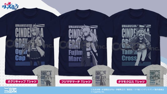アニメ『ウマ娘 シンデレラグレイ』より新グッズ、オグリキャップ、フジマサマーチ、タマモクロス 3人のウマ娘の「Tシャツ」が二次元コスパから登場です。