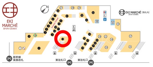 場所:エキマルシェ新大阪(改札内)区画番号13.(下図参照)