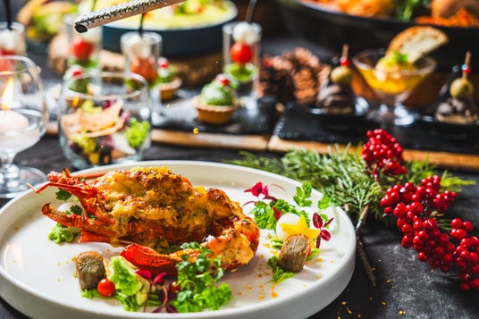 アンガス牛グリルステーキ&ロブスター テルミドール仕立て (+¥2,500)肉の旨みを堪能できるアンガス牛サーロインのグリルと濃厚なテルミドール仕立てのフランス産ロブスターを一皿に。特別な日にふさわしい、贅沢なダブルメインです。