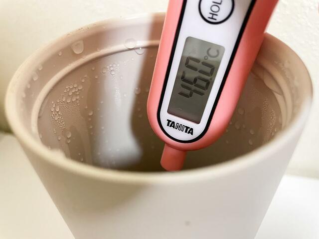 本体は、ステンレスの真空二重構造になっていて、冷めていくのもゆっくり。 2時間後でも、約46℃をキープしていました。