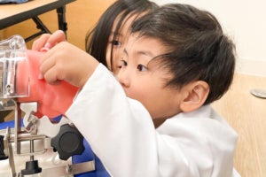 実際の器具に触れ、興味津々な様子
