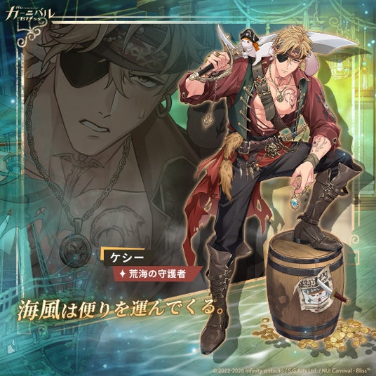 人気BLアプリゲーム「NU: カーニバル - Bliss」では、本日(24日)より、期間限定イベント「迷霧のロンド」を公開中です。出会って4年を記念して、エイトは眷属たちを豪華バカンスに招待することに。海賊衣装に着替えたケシー、ガル、エンテンは、琥珀色のシュガー酒の香りに包まれて、濃霧の中で幽霊船に遭遇。彼らとともに手掛かりを探して、歳月の中に埋もれた真相を探ろう!