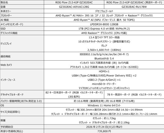 ※今回発表のROG Flow Z13-KJP GZ302EACの詳細スペックはこちらからご確認ください。