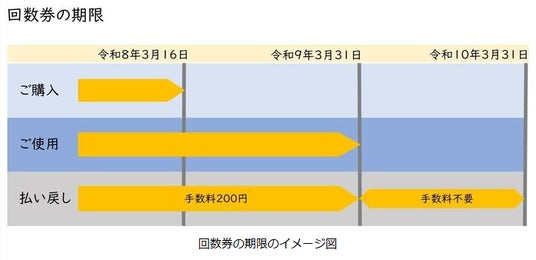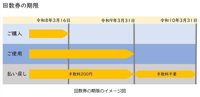 なお、購入済みの回数券の使用期限および払い戻し期限は次のとおりです。