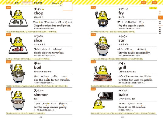 カタカナさえ読めれば、3歳のお子様から100歳のシニア世代まで、即実践OK。全単語にかわいいイラストをつけることで、意味が直感的にイメージできるうえ、記憶にも深く定着します。さらに、カタカナ表記を見ながらネイティブの発音を聞くことで、どんどん英語が聞きとれる「英単語耳」が手に入るのも、本書ならではの大きな強み。