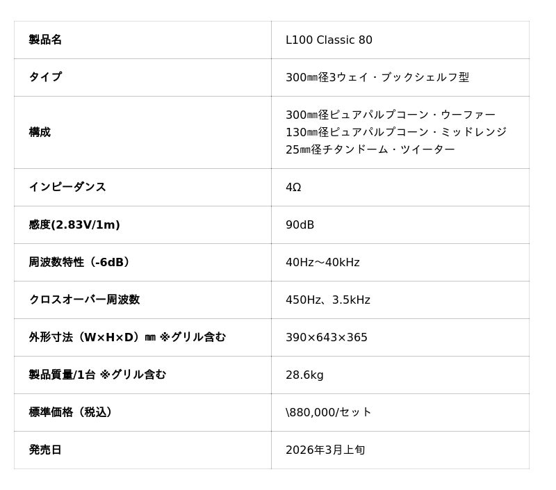 ハーマンインターナショナル株式会社(本社:東京都千代田区、代表取締役:桑原拓磨)は、アメリカ カリフォルニア発祥の世界最大級のオーディオブランド「JBL」より、世界的なヒットモデル「L100 Classic」の後継機「L100 Classic Mk2」をベースに、フロントバッフルを含む全6面に美しいオーク・リアルウッドを採用した特別仕様の意匠と、限定シリアル番号入り記念プレートを備えたJBLブランド80周年記念モデル「JBL L100 Classic 80」を発売いたします。本モデルは、2026年3月上旬より全世界800セット、日本国内20セットのみの限定生産で、一部の専門店販路限定で発売いたします。