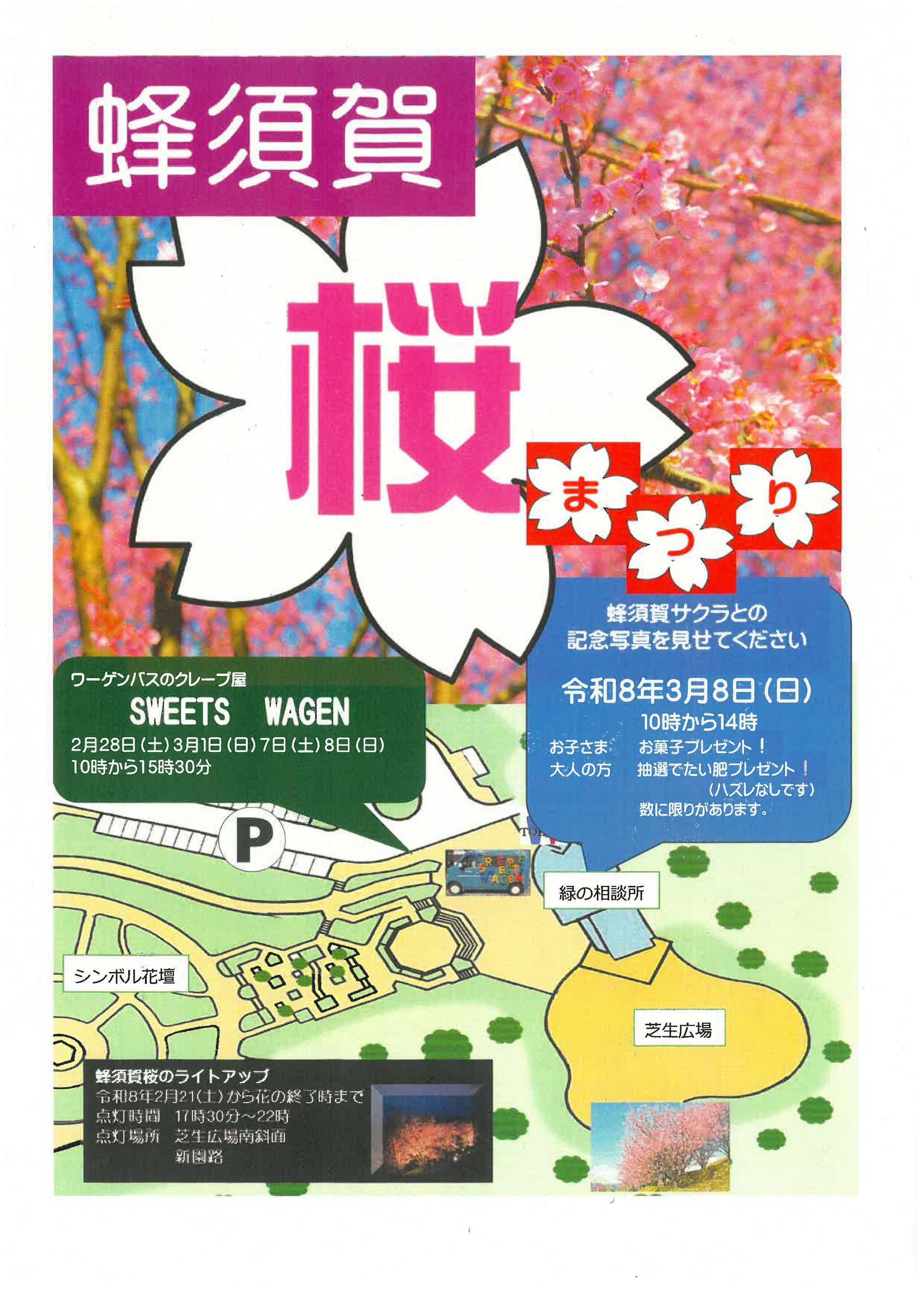 蜂須賀桜と一緒に写真を撮影し、緑の相談所でご提示ください。