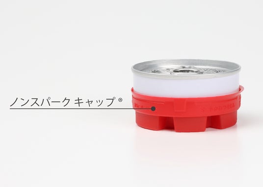 缶詰底部に専用アタッチメント「ノンスパークキャップ(R)」を取り付けることで、金属素材とレンジ庫内底面との間に一定の間隔を保ち、加熱時のマイクロ波によるスパークの発生を抑える新技術です。