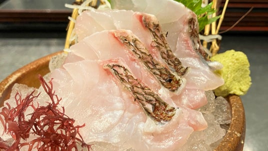 藻塩で熟成させ、皮目をパリッと炙り上げた贅沢な刺身。