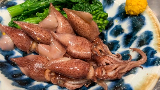 釜茹でしたプリプリのほたるいかを、菜の花と共にさっぱりと辛子で。