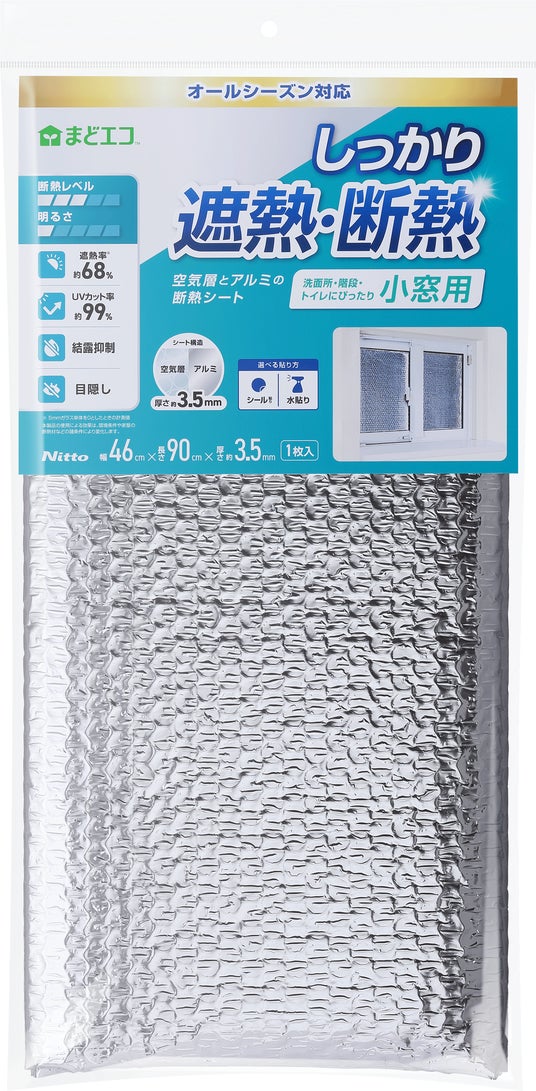 株式会社ニトムズ(本社:東京都品川区、代表取締役社長:右近敦嗣)は、窓ガラスに貼るだけで、当社史上最高※の遮熱・断熱効果を発揮する「夏冬兼用 結露防止断熱アルミシート」を2026年3月2日(月)に発売します。