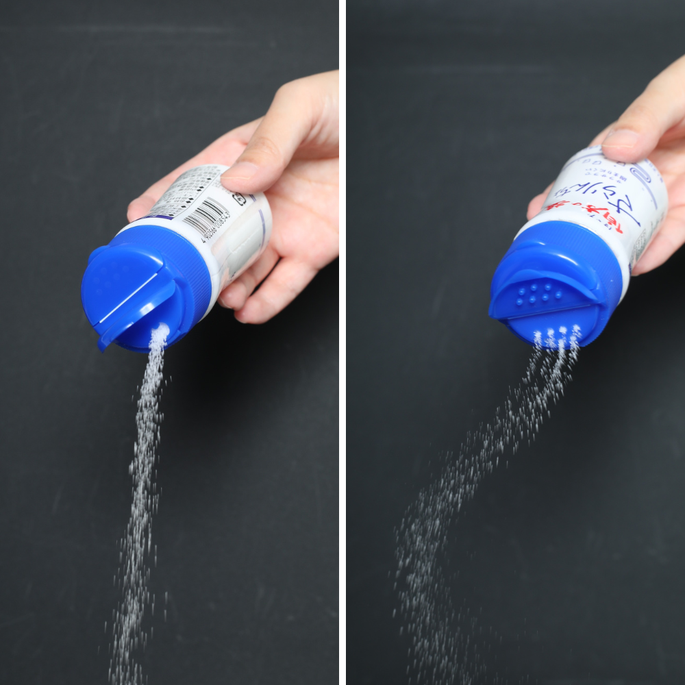 片手で手軽に使えるハンディボトルタイプの塩です。振り口は2way仕様で、用途に合わせて振りかけたり、しっかり振り出したりと使い分けが可能。また、片手で簡単に開閉できるキャップを採用しているため、フライパンを持ちながらでもサッと使える操作性が魅力です。サラサラしているのでまんべんなく振りかけやすく、「炒め物」や「グリル料理」などにぴったりです。さらに、コンパクトかつ軽量設計のため、アウトドアやお弁当、防災用の持ち運びにも便利で、さまざまなシーンで活躍します。まさに"スぺパ革命"。