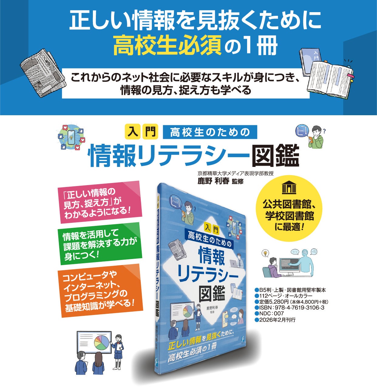 学事出版株式会社(鈴木宣昭 代表取締役社長)は、『入門 高校生のための情報リテラシー図鑑 正しい情報を見抜くために高校生必須の1冊』(鹿野利春監修)を刊行いたします。