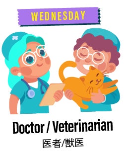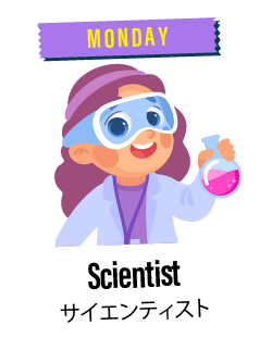月曜日から金曜日まで、毎日異なる職業をテーマに、英語で多彩なSTEAMアクティビティを体験していきます。子どもたちは職業の世界に触れながら、自分の「好き」や「得意」を発見し、未来への想像力を広げていきます。