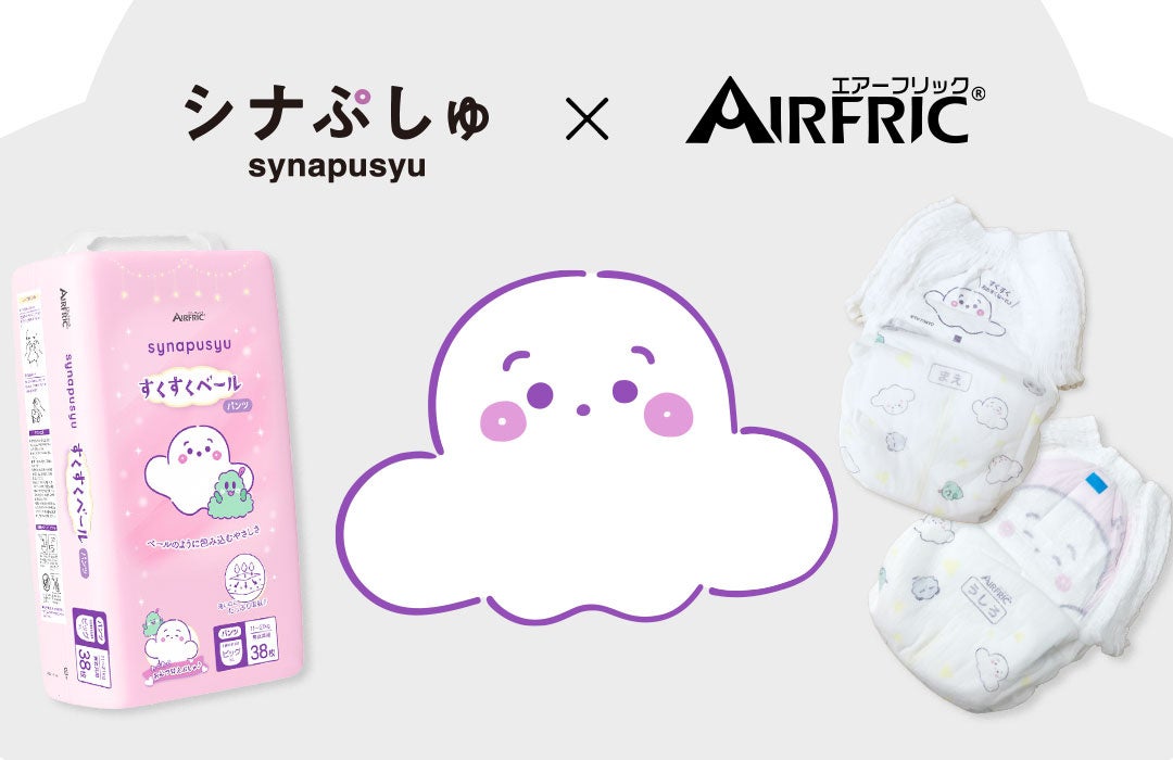株式会社AIRFRIC(本社:東京都足立区、代表取締役:雷興陽)は、テレビ東京系列で放送中の乳幼児向け人気番組「シナぷしゅ」とコラボレーションしたベビー用 紙おむつ≪すくすくベール≫を、2026年3月20日より発売いたします。