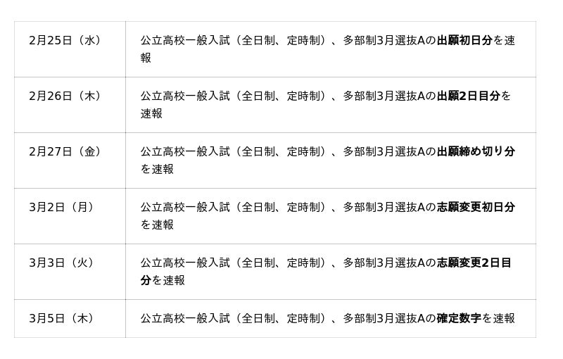 神戸新聞の電子版「神戸新聞NEXT」では、兵庫県の公立高校一般入試の出願状況を、2月25日(水)夕方頃より速報します。出願開始から志願変更、最終確定まで、複数回にわたって速報するため、志望校の状況確認や出願変更を考える際の判断材料として活用できます。