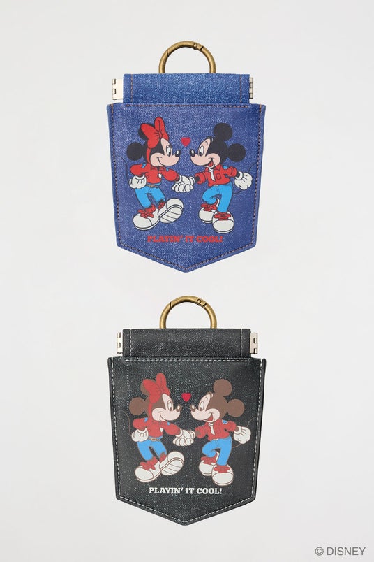 カジュアルスタイルでデニムを履いたMICKEY MOUSEとMINNIE MOUSE。